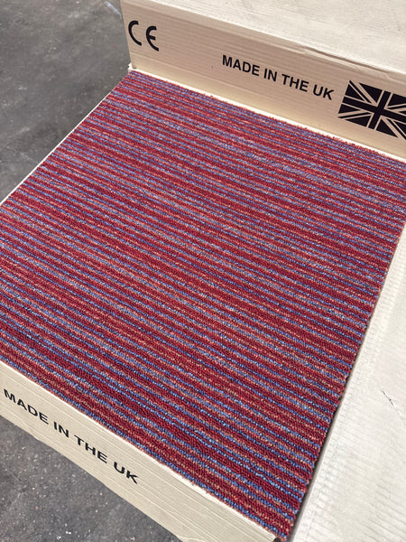 Illusions Stripe Velvet Red Carpet Tiles New - 200 Tiles In Stock